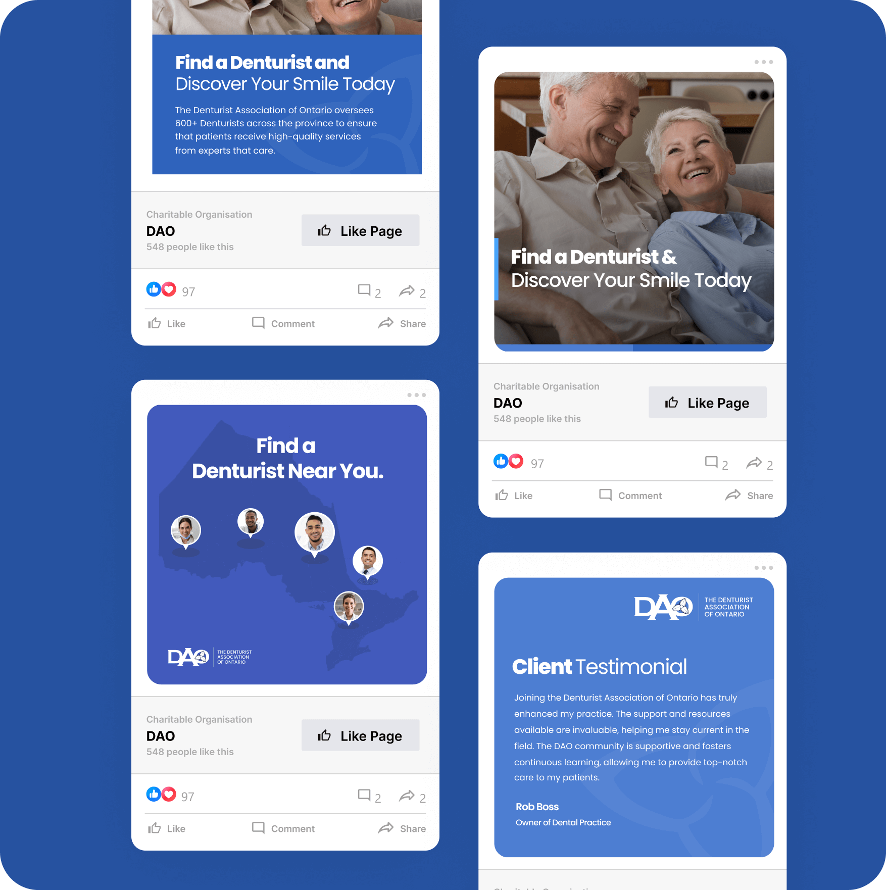 Building digital awareness for an association of 600+ Ontario Denturists whose services lack online advocacy.