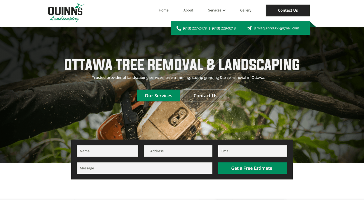 Quinn’s Landscaping leads the way with exceptional contractor home page design. On their brand new site, Quinn’s makes use of today’s latest contractor website conversion rate optimization trend: two different types of contact forms. In the grand scheme, their website design shows its commitment to its users with thoughtful placement of key elements.