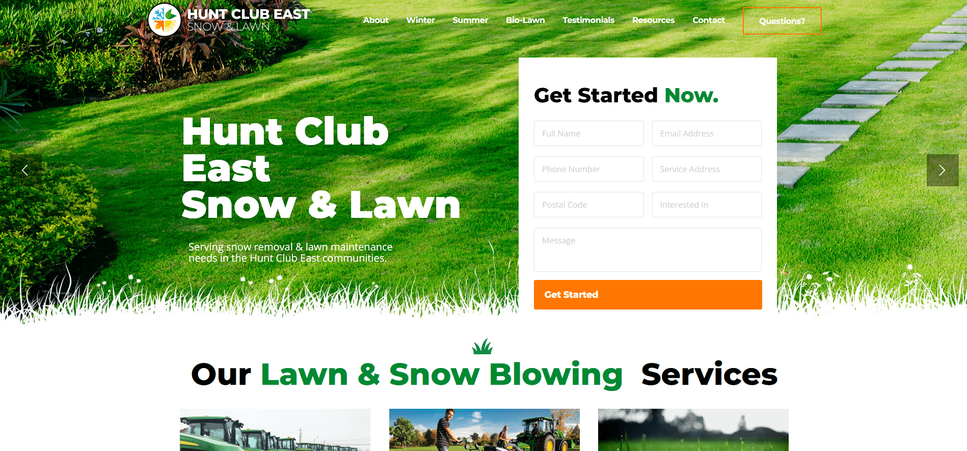 Hunt Club’s leading contractor in snow removal and lawn maintenance runs a seasonal business with services that vary by time of year. Being that their business evolves every season, it’s only fair that their website design does too. Even when we put aside the incredible use of contrast, Hunt Club East Snow & Lawn’s website stands out with its amazing call to actions, testimonials and blog section.