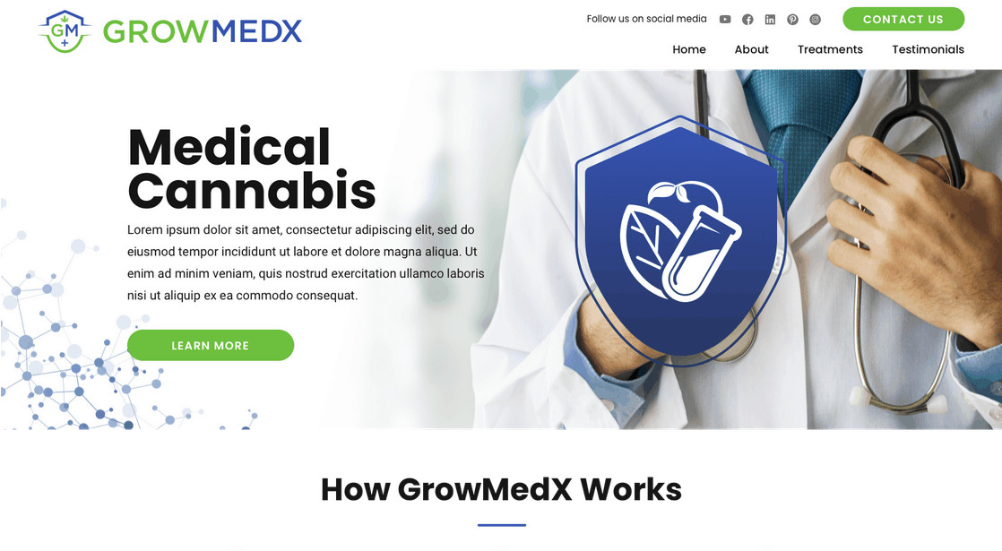 Ottawa’s GrowMedX light theme website leads the way with a professional appeal and incredible simplicity.