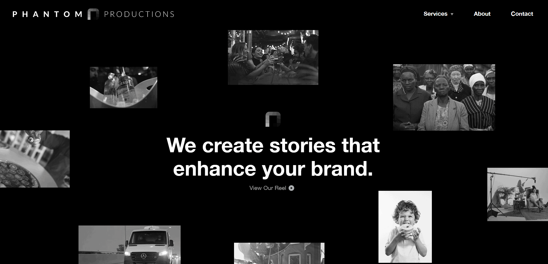 Are you an industry leader? Consider this approach to website design. Phantom Productions maintains a high level of authority with a sleek dark look and visual hierarchy.