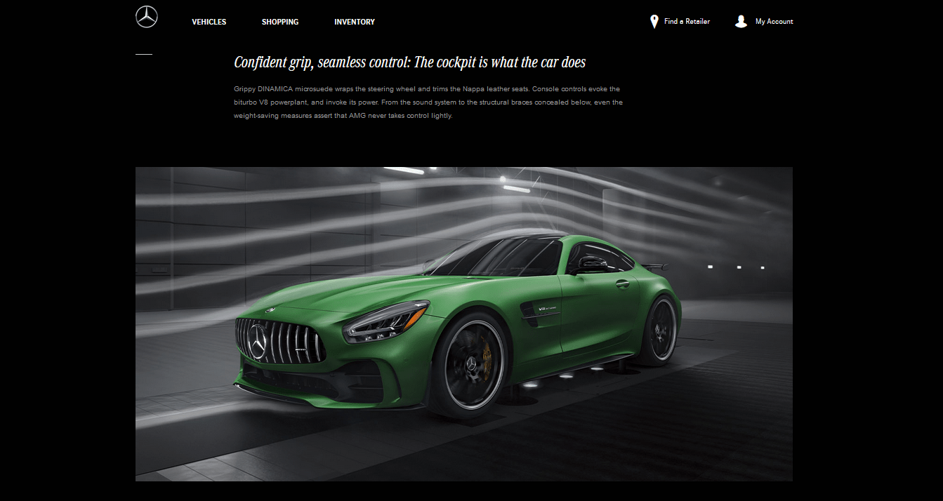 Here’s one you might be familiar with, high-performance luxury automaker Mercedes-AMG. With this dark theme approach, Mercedes better promotes AMG as an exclusive and luxurious brand.